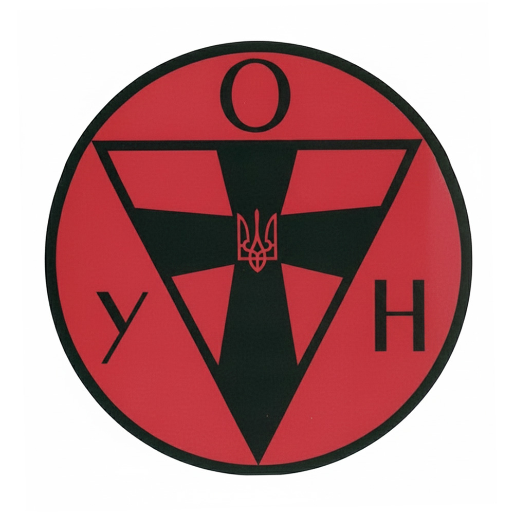 В одній з перших своїх офіційних постанов 1941 року бандерівці відмінили вживання Тризубу з мечем як знака-розрізнення своєї ОУН. Замість нього було введено нову емблему: «…Чорний рівнораменний трикутник підставкою вгору, на ньому червоний хрестомеч, на хрестомечі золотий Тризуб. Над підставкою буква “О”, по лівій стороні знамени трикутника буква “У”, по правій “Н” (разом ОУН)…»
