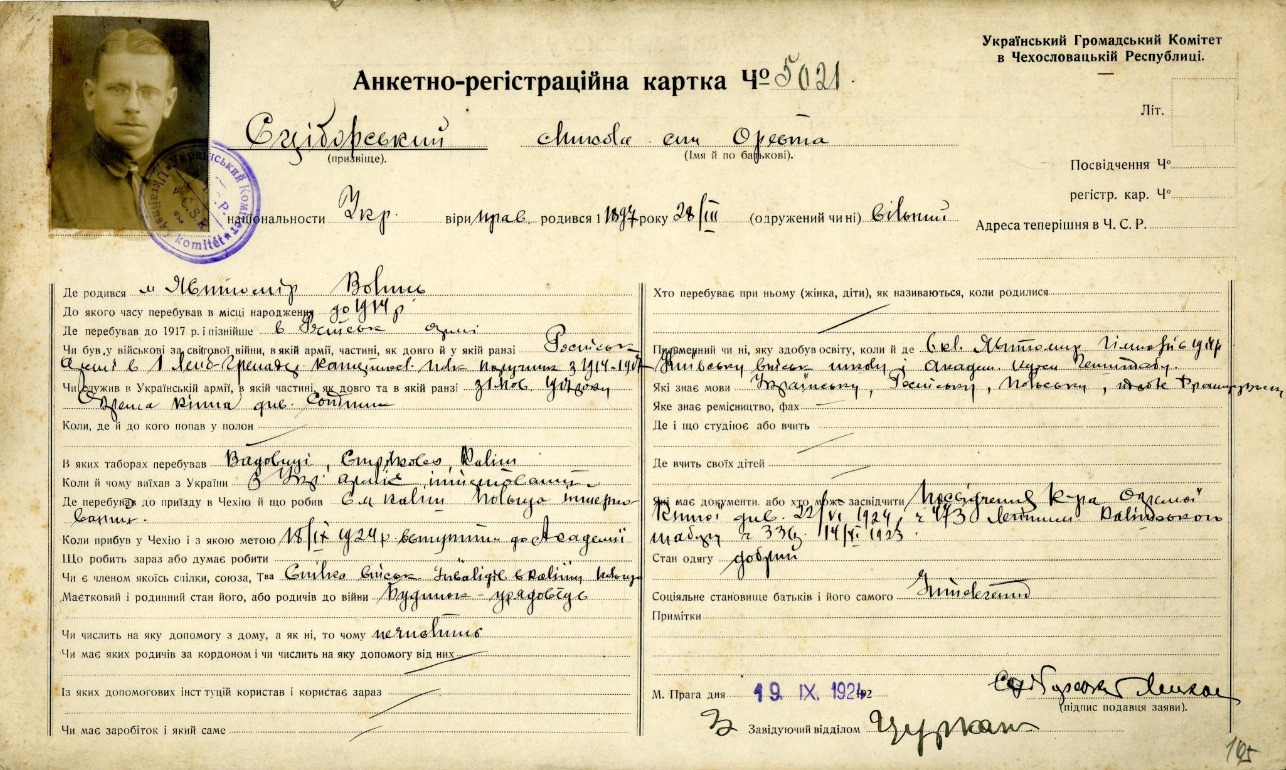 Майбутній ідеолог ОУН офіційно демобілізувався з лав українського війська в 1924 році. Тоді ж він переїхав з Польщі до Чехословаччини, в місто Подєбради. Там він вступив до УГА (Української Господарської Академії), де здобував фах інженера-економіста. З тих пір Сціборський не носив форми і не фотографувався в ній, надаючи перевагу цивільному костюму.